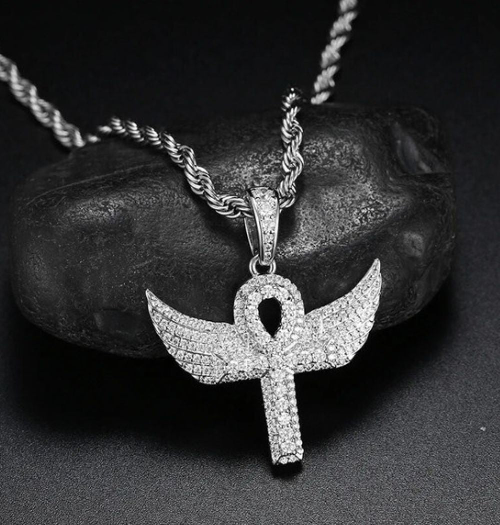 Moissanite Dollar Sign Hip Hop Pendants with Wings